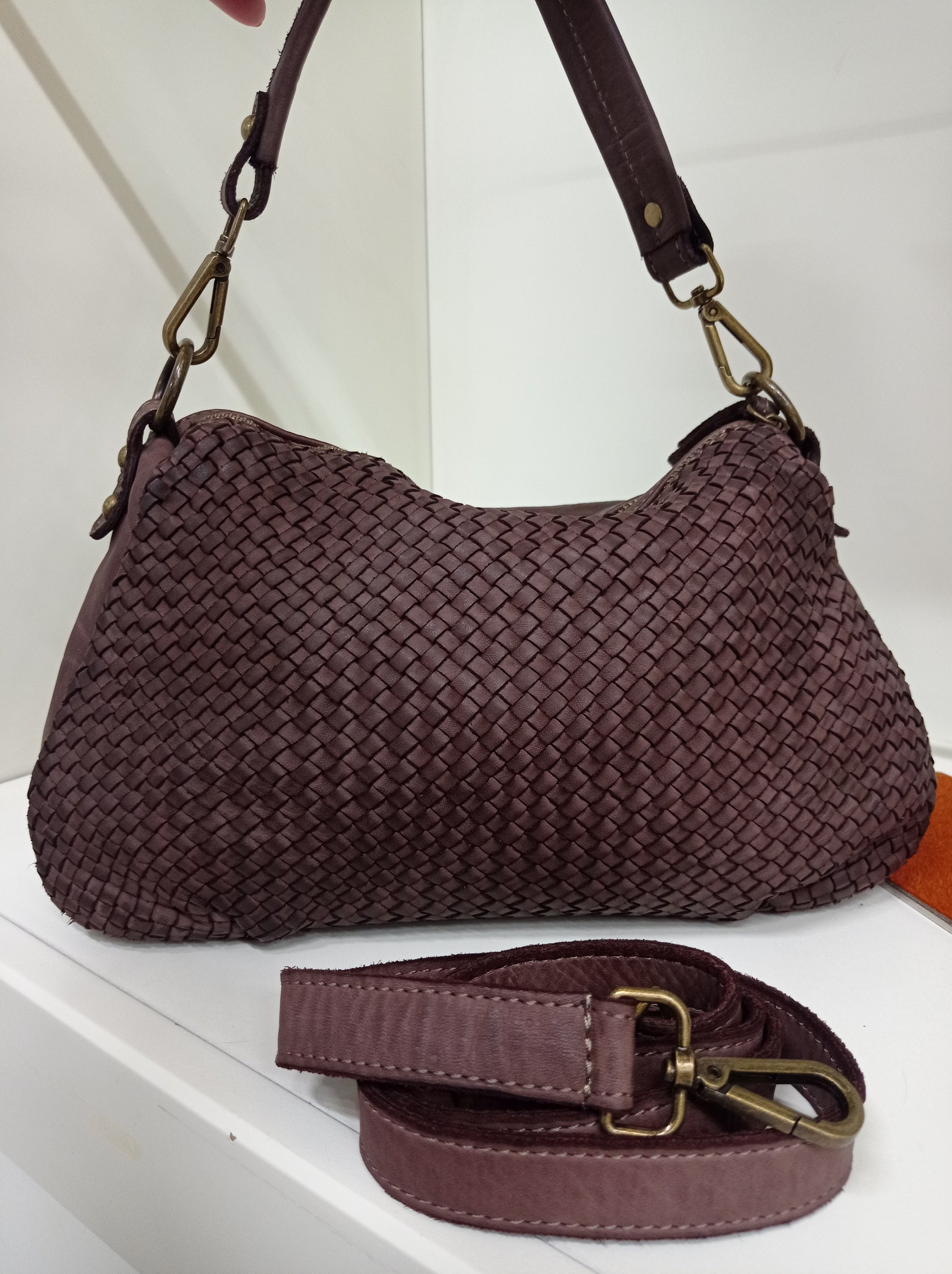 Borsa in vera pelle morbidissima intrecciata a mano