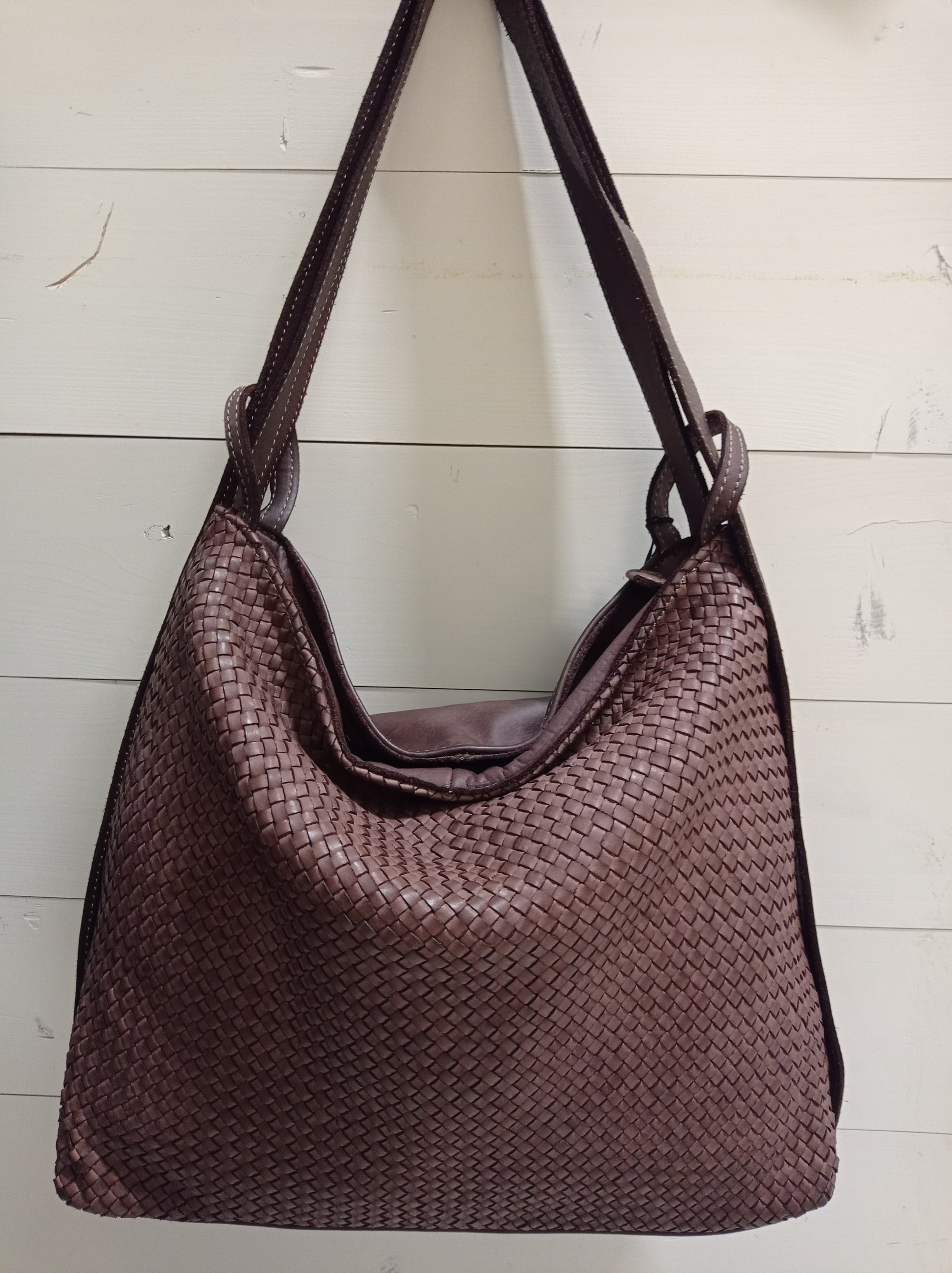 Borsa-Zaino in vera pelle morbidissima intrecciata a mano