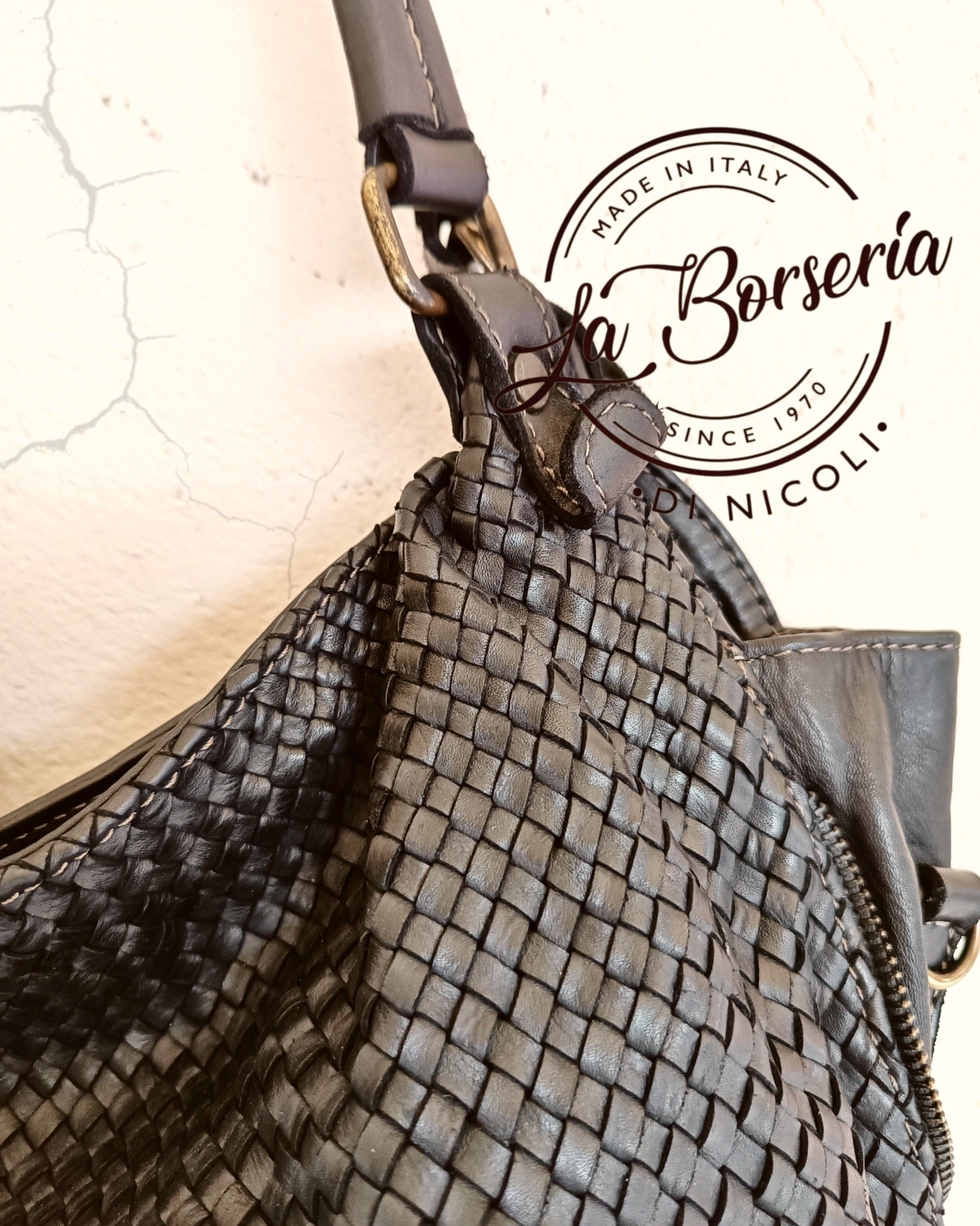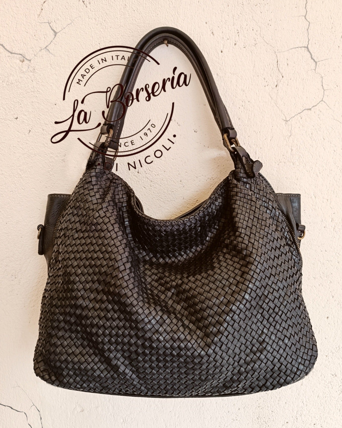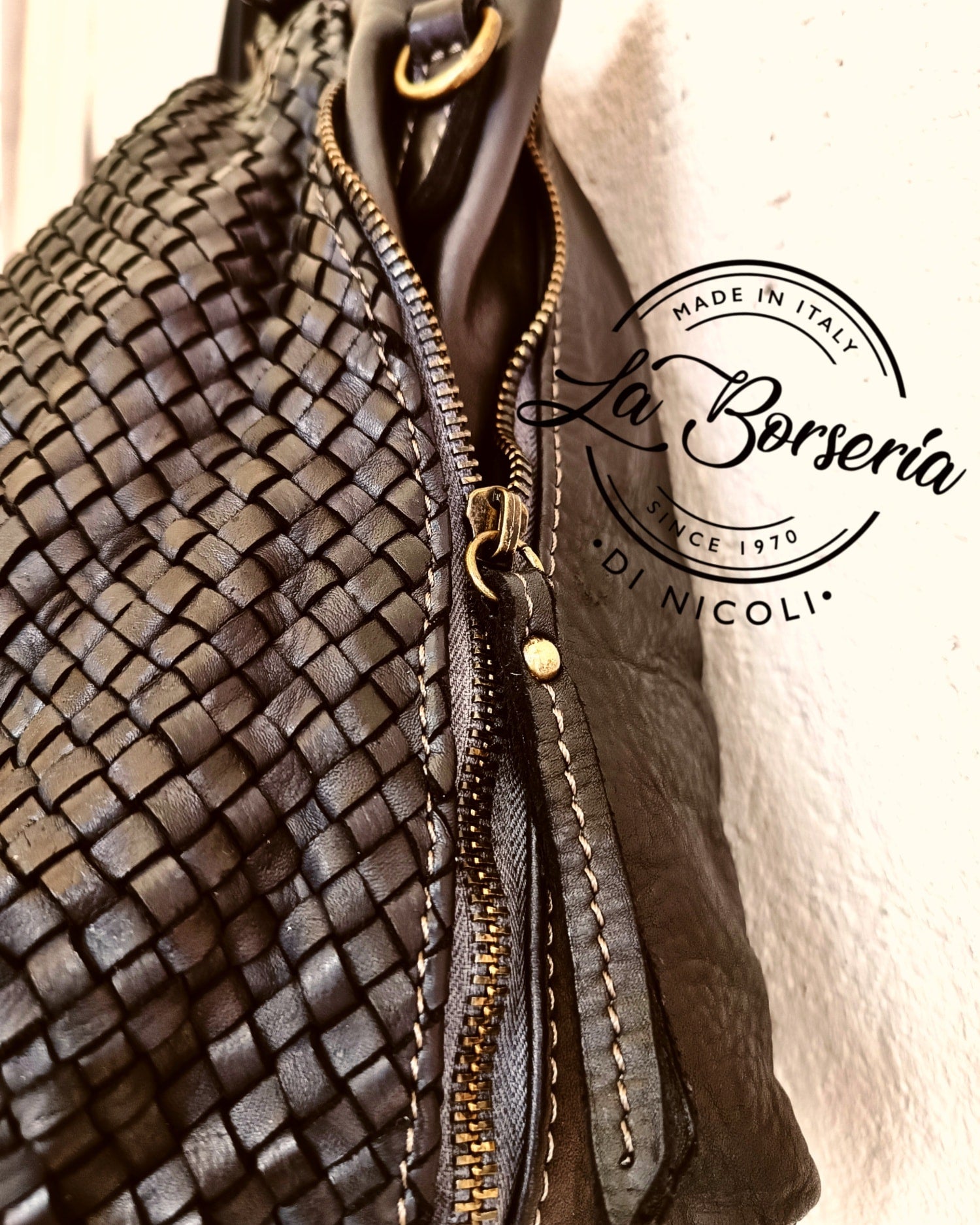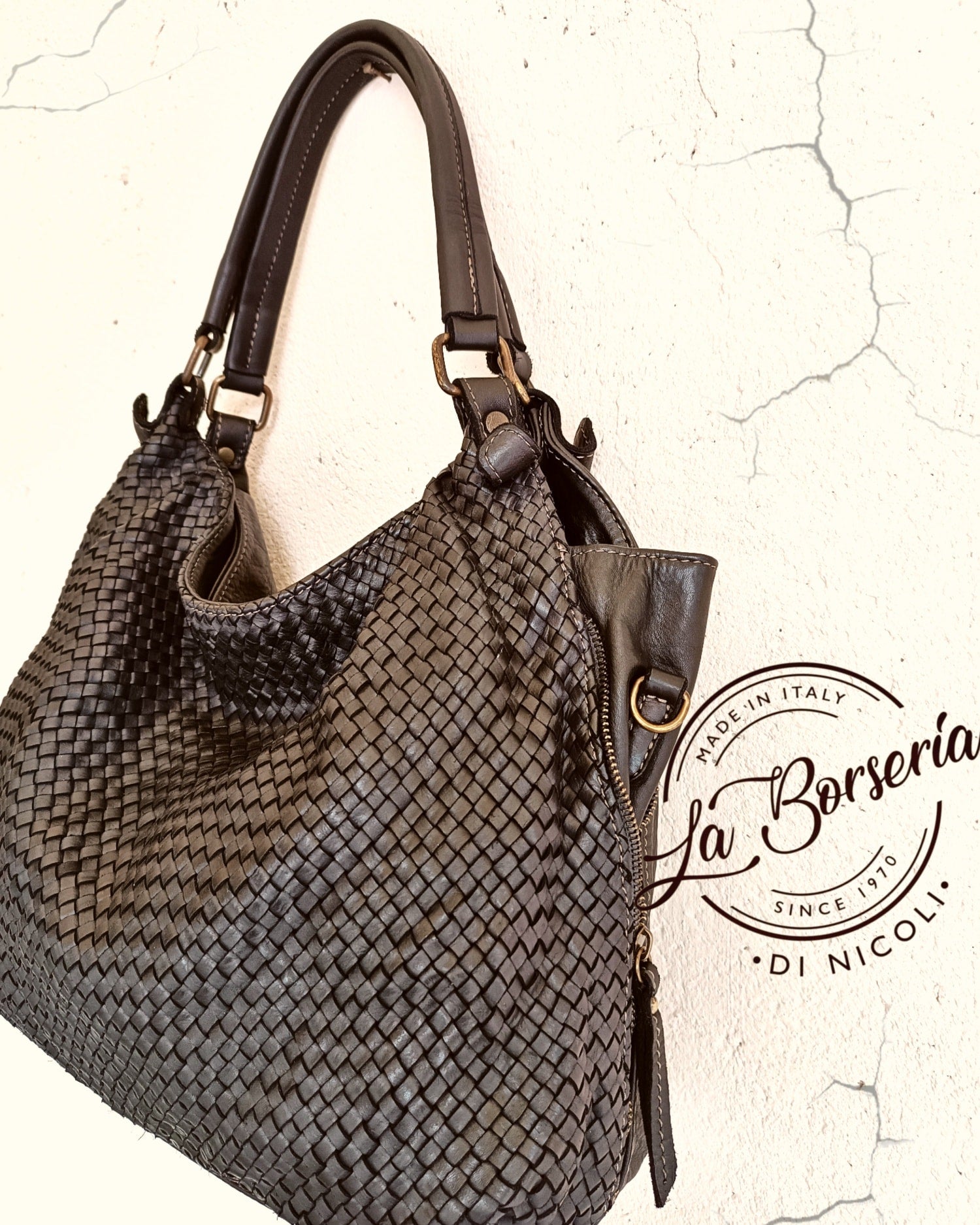 Borsa a due manici in vera pelle morbidissima intrecciata a mano