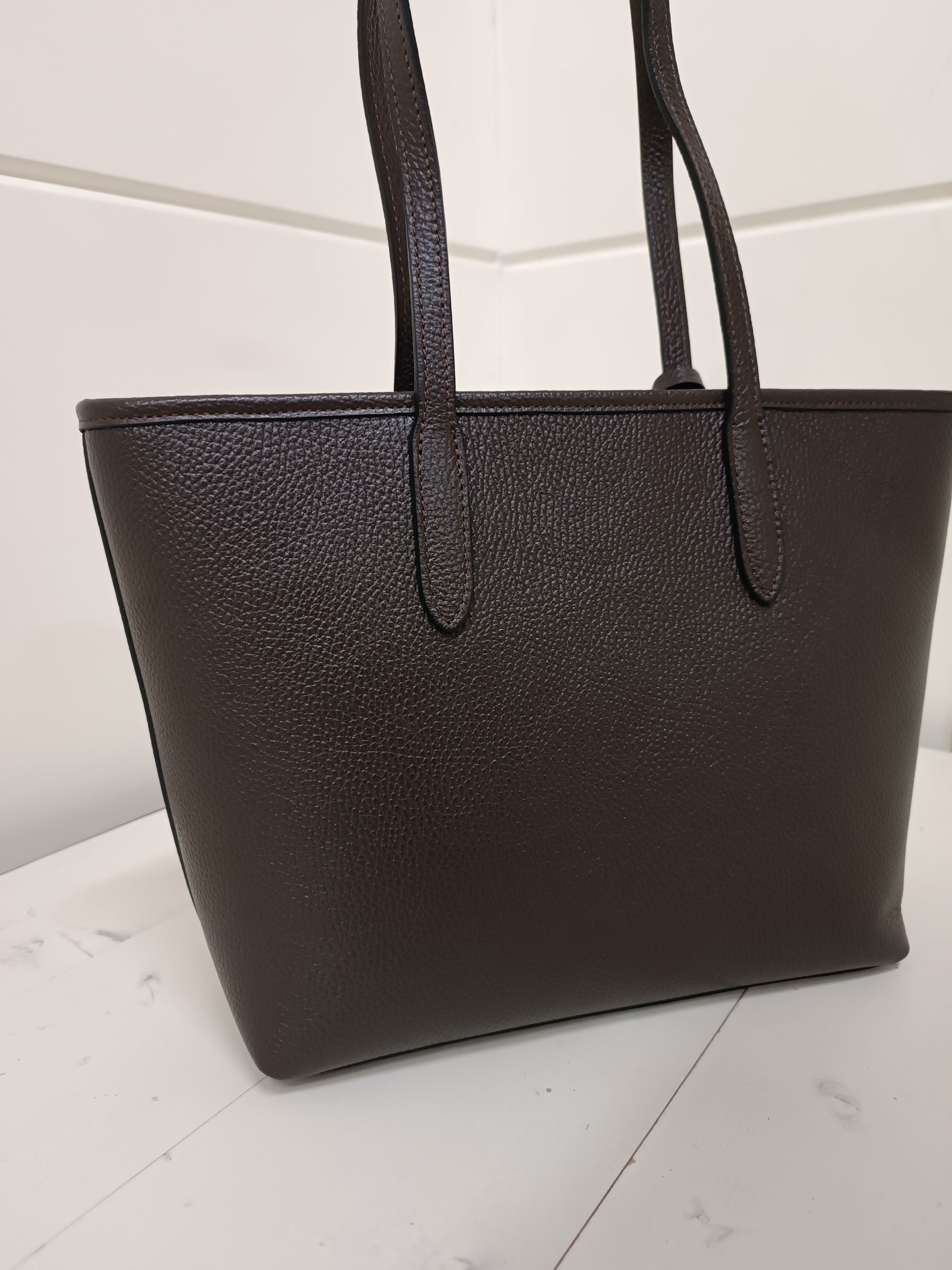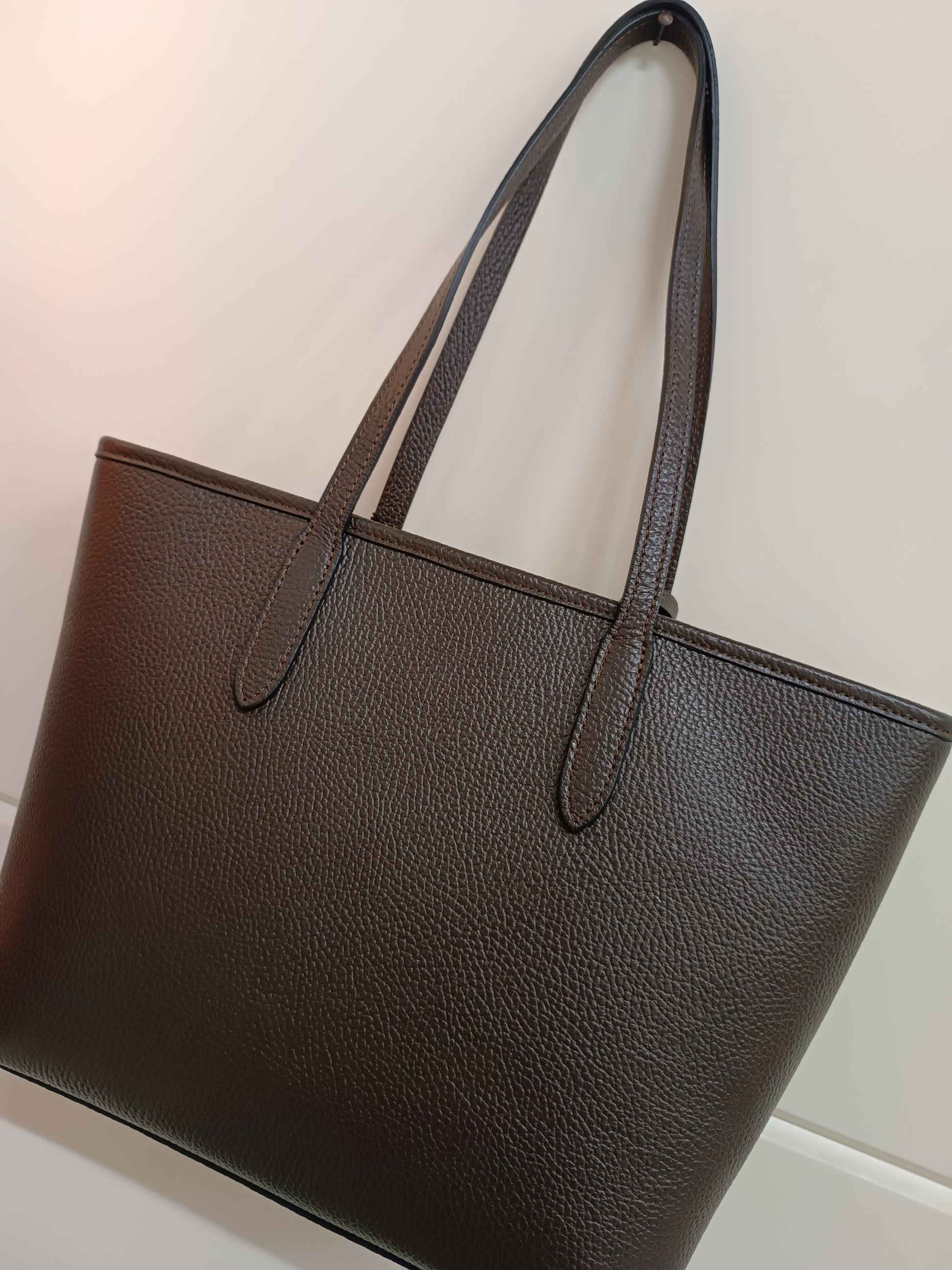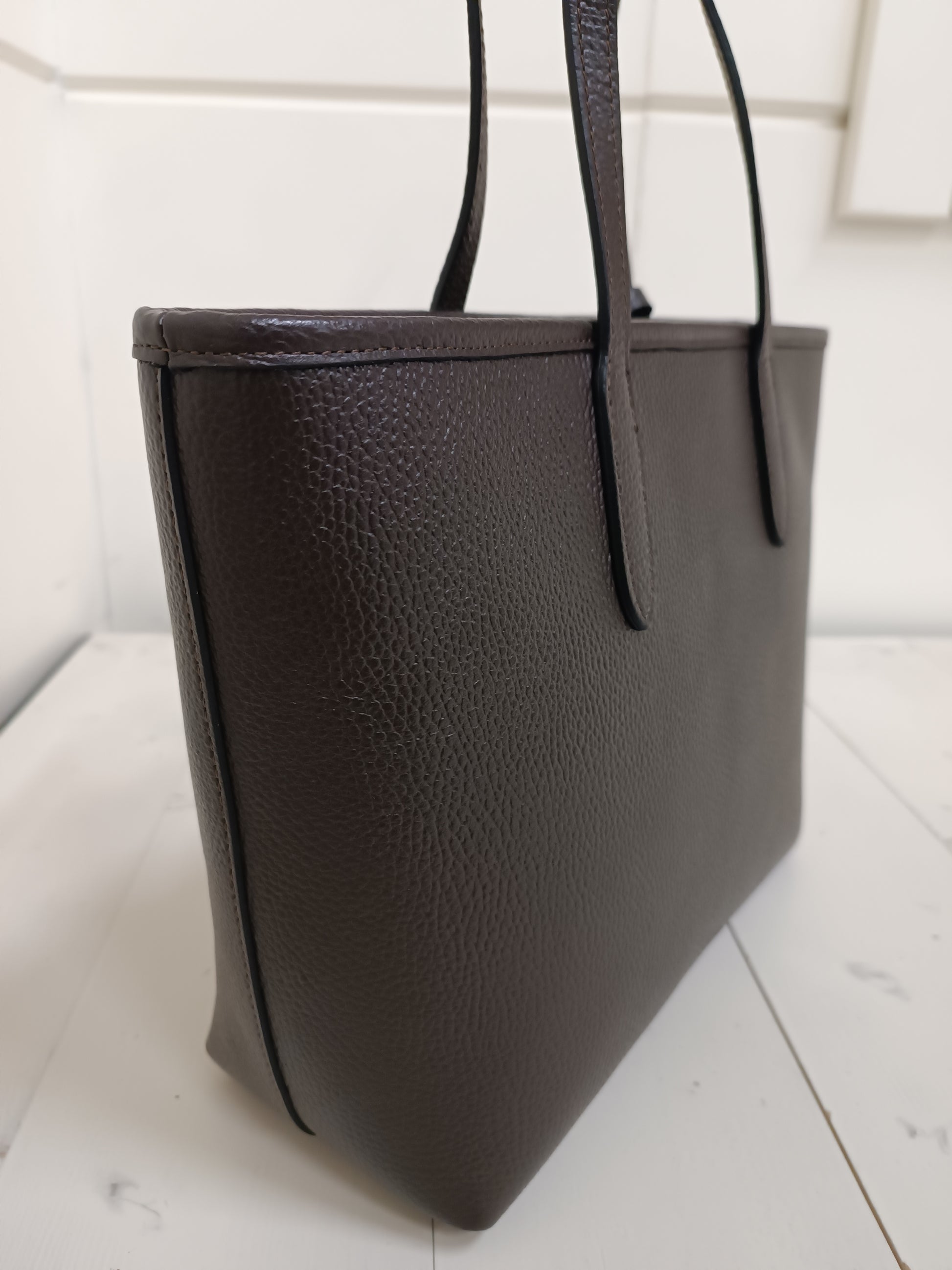 shopper rigida, leggerissima, a due manici in vera pelle dollarino