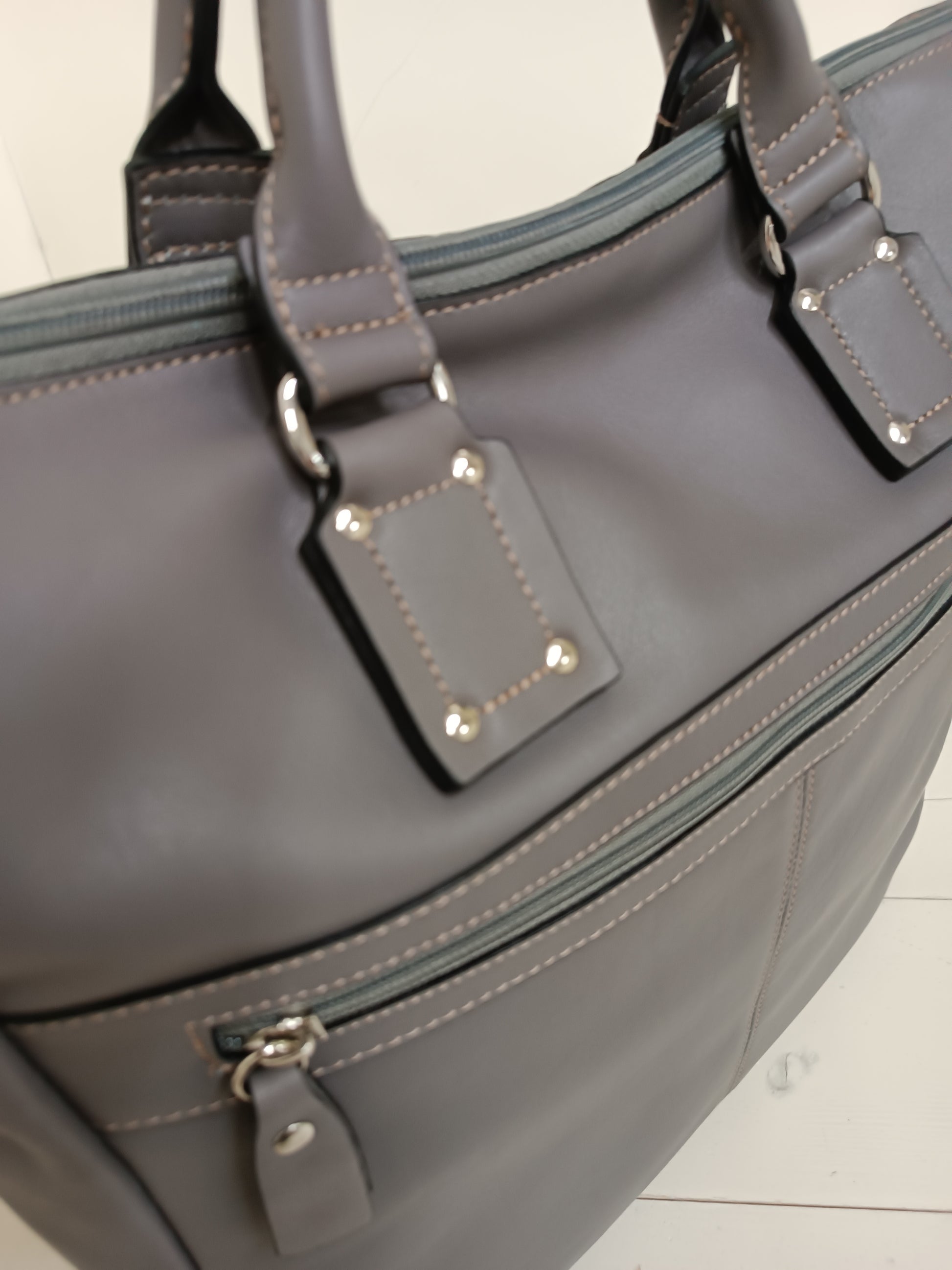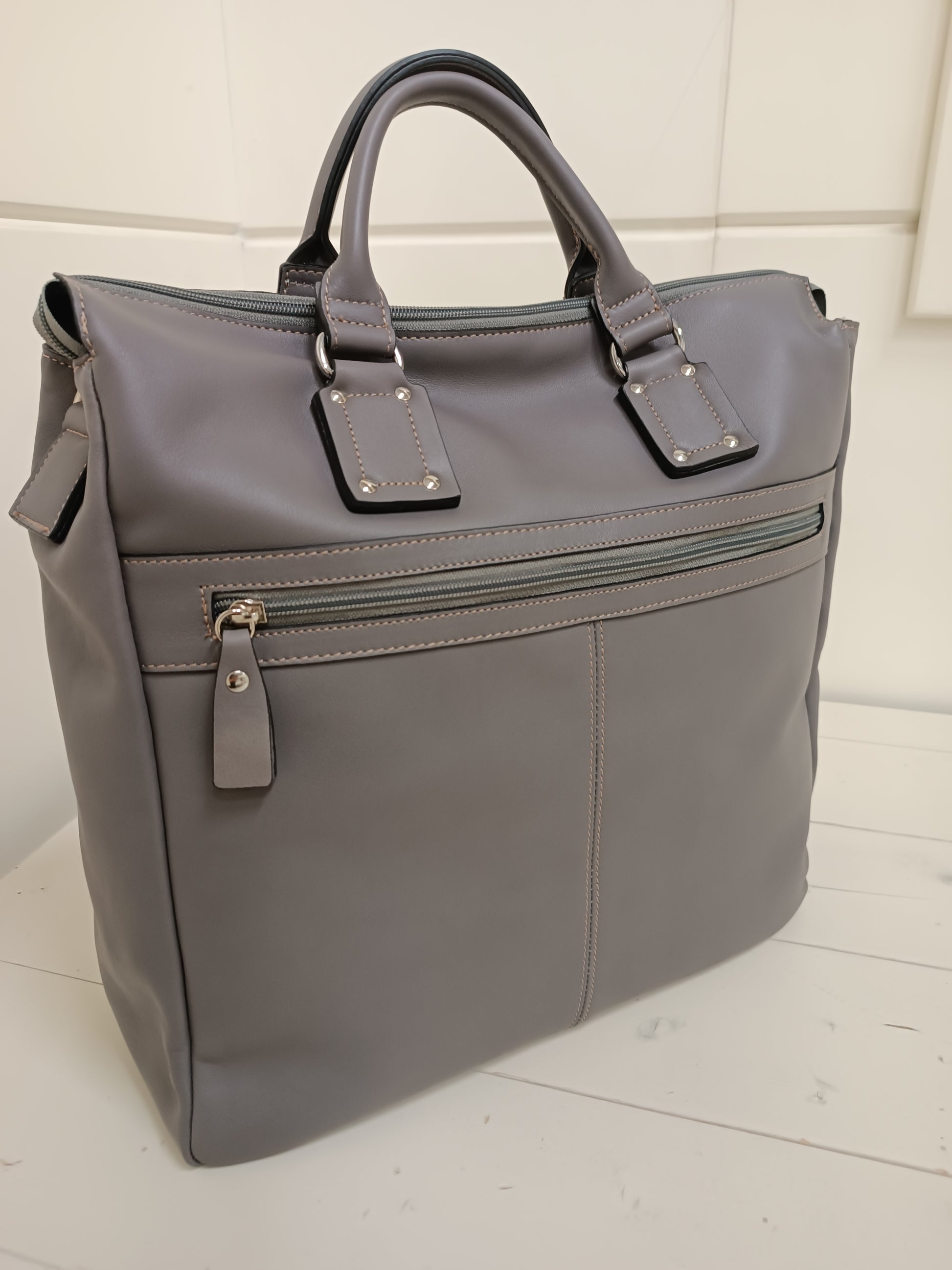 Borsa da lavoro 𝗨𝗡𝗜𝗦𝗘𝗫, in vera pelle dollaro, due grandi tasche esterne, tracolla regolabile.
